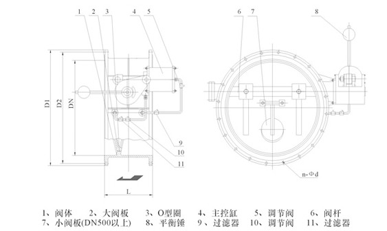 液力自动控制阀可用于离心水泵出口,具有截流止回、轻载启泵、消除水锤和流量调节等功能,可有效保护水泵和管网设备安全;阀门开度即可现场观察,有可远程数字显示,同时,还可输出4—20mA直流电流供计算机集中控制使用。 |